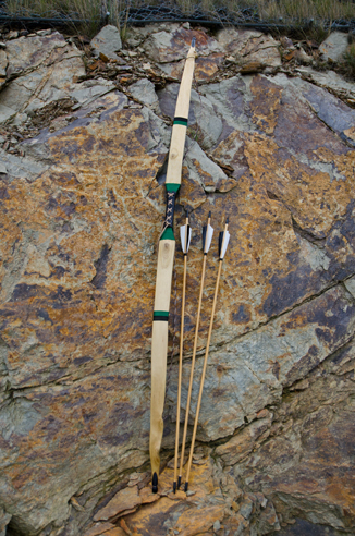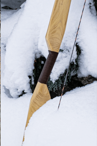 Ich verwende im Bogenbau vorzugsweise heimische Hölzer regionaler Herkunft, greife aber auch gern auf bestimmte Sorten aus dem Handel zurück. Wenn ein Bogen in Laminatbauweise gefertigt wird, kann – auf Absprache – auch Kunststoff zum Einsatz kommen. Für die Bogensehne verwende ich Dacron-Garn.